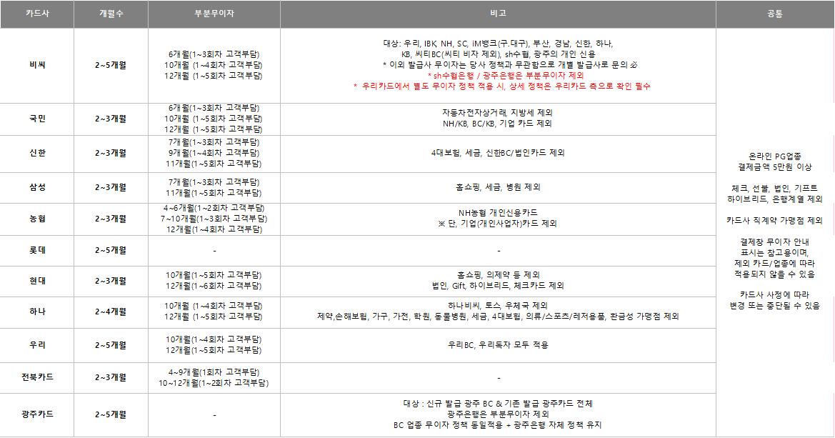 *카드 무이자 할부 혜택은 PG사인 메인페이에서 제공하는 혜택입니다.