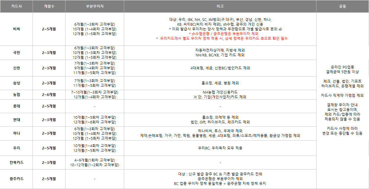 *카드 무이자 할부 혜택은 PG사인 메인페이에서 제공하는 혜택입니다.